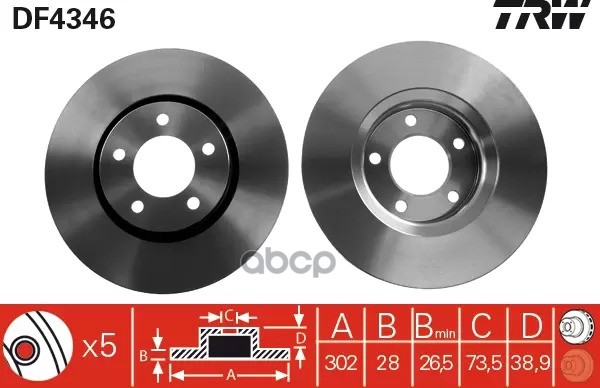Диск тормозной | перед | BMW 5 (E60) 525 i 10.2004 - 12.2009 <=> BMW 5 (E60) 525 i 09.2003 - 03.2010