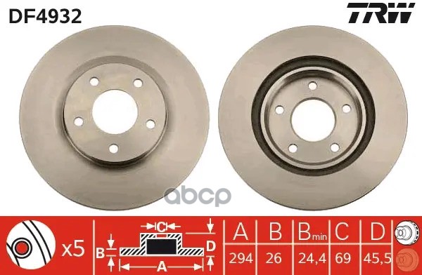 Торм.диск пер.вент.[296x29] 5 отв. CHEVROLET Captiva 2.0D/2.4/3.2 06->, OPEL Antara 2.0CDTi/2.4/3.2 06->