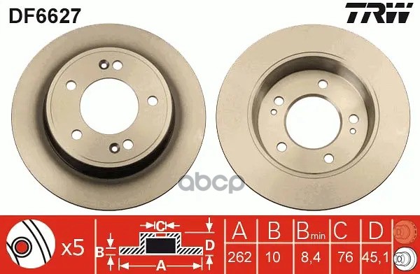 Диск торм. зад.[295x10] 5 отв. MERCEDES W176 160-220 CDI 09/12->/ W246,242 160-250/CDI 02/13->/ X156 200/220/CDI 12/13->/ C117 180-250/CDI 01/13->