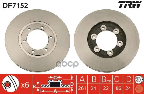 Торм.диск пер.[261x24] 6 отв. KIA BONGO 2003 ->, K2500 2003 ->, K2700 1997 ->, K2900 2008 ->