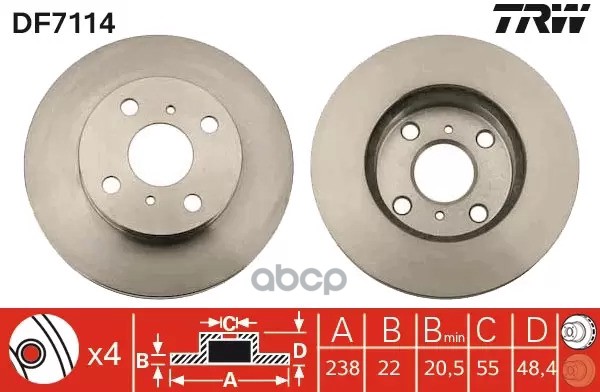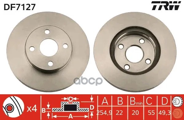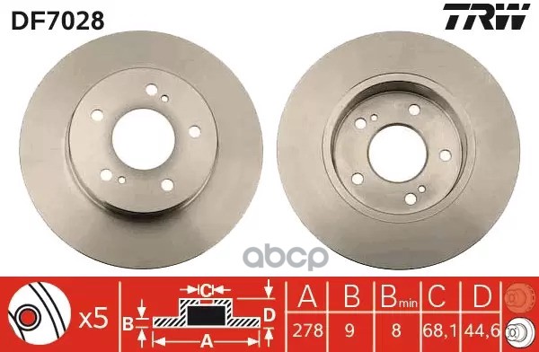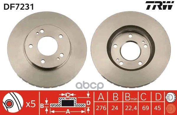DF6977S TRW Диск тормозной перед CITROEN JAMPY, PEUGEOT EXPERT 1,5-2,0HDI 16-, OPEL VIVARO, ZAFIRA L