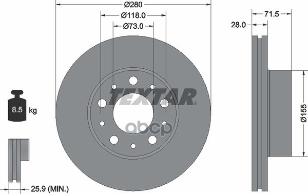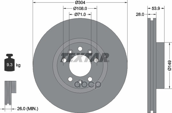 Диск тормозной передний [304x28] 5 отв. с покрытием PRO вентилируемый CITROEN Jumpy 16-> / Spacetourer 16-> / PEUGEOT Expert 16-> / Traveller 16-> / TOYOTA ProAce 16->