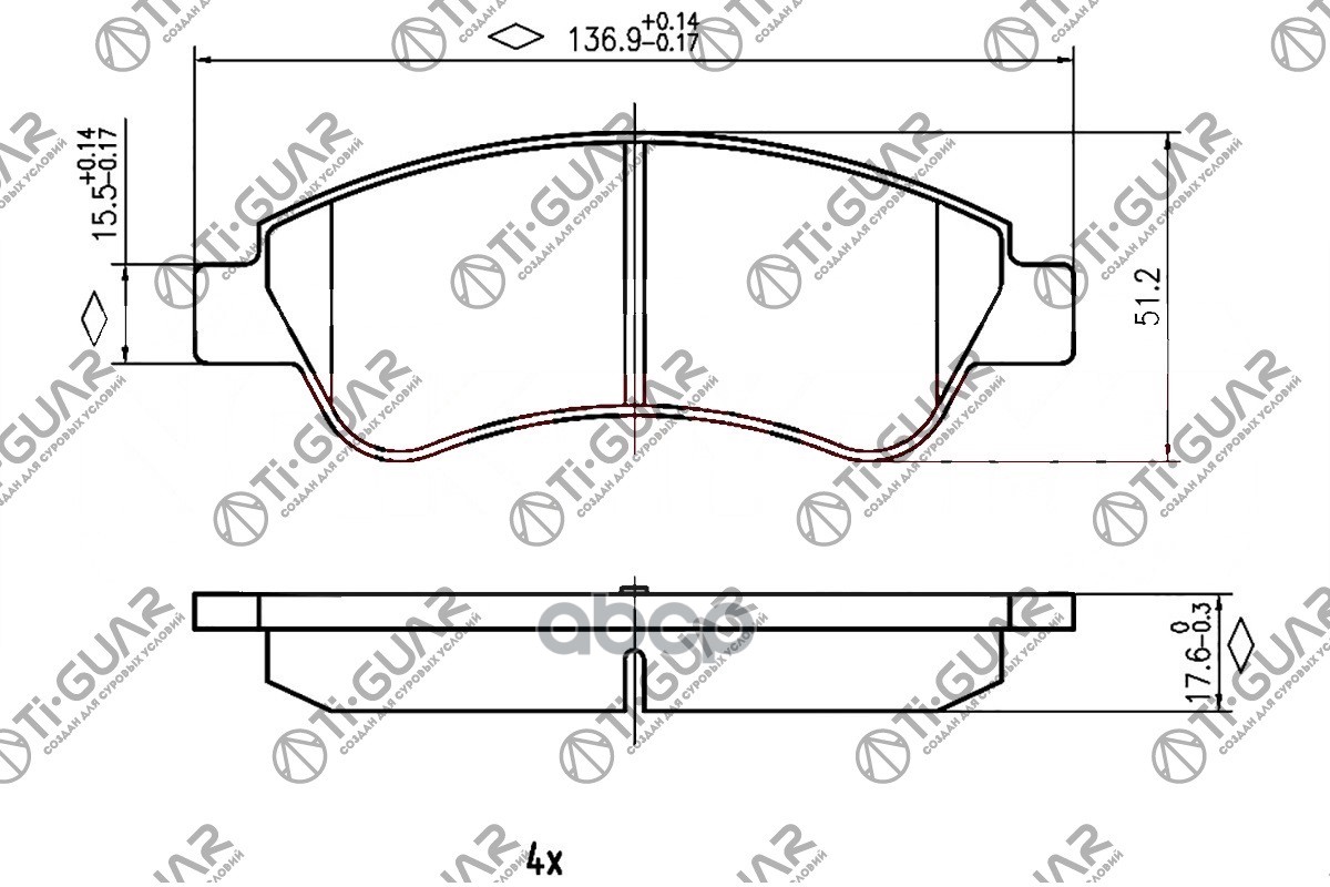 Тормозные колодки дисковые /задние комплект 4шт /КЕРАМИЧЕСКИЕ / TI-GUAR для CITROEN JUMPER, FIAT DUCATO, PEUGEOT BOXER 2006-2014 TG-1472C PN0475 4254.69 155253632 (R15/16) 06-14 / (R15) 14- CITROEN JUMPER, FIAT DUCATO, PEUGEOT BOXER ЗАДНИЕ ДИСК.