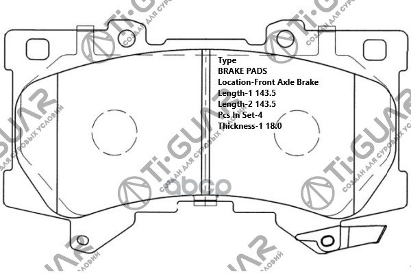 Тормозные колодки дисковые /передние комплект 4шт /TI-GUAR для TOYOTA LAND CRUISER 300 2021-, V35A-FTS, LEXUS LX600, 500D TG-1522C TG-1522 0446560380 507802180 TOYOTA LAND CRUISER 300 21- V35A-FTS ПЕРЕД.