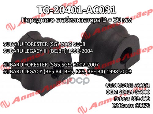 Втулка стабилизатора TG-20401-AC011 * Ti·GUAR D=19.2 SUB LEGACY B11, B12, FORESTER S10, IMPREZA G11 FR
