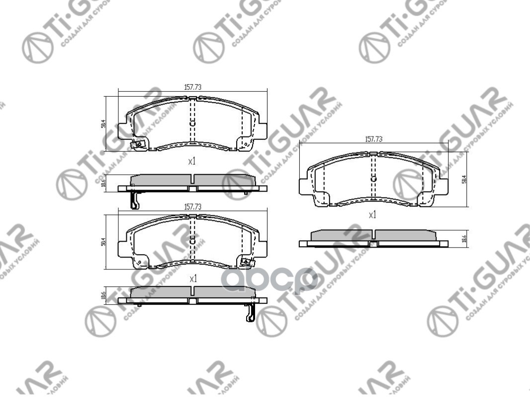 Тормозные колодки дисковые /передние комплект 4шт /TI-GUAR для ACURA MDX 2006-2013, HONDA PILOT 2011-2016 TG-28001 PN28001 45022STXA00 45022STXA00