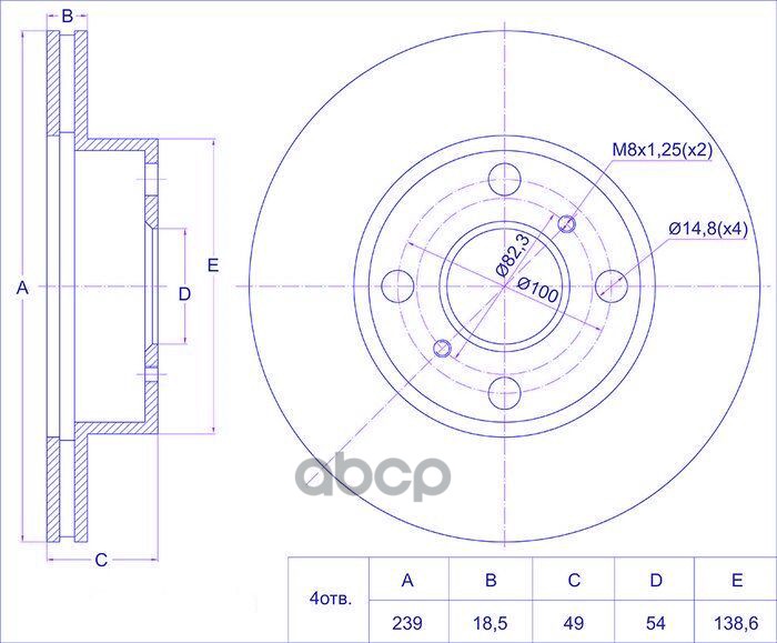 Диск тормозной /передний /TI-GUAR для Toyota Corolla Carib Sprinter 1987-2002 239/18,5мм TG-43512-12250 PD3112424S 4351212440 ADC0113V перед TY COROLLA / CARIB / SPRINTER 87-02 (НАРУЖНИЙ ДИАМЕТР 239ММ / ТОЛЩИНА 18,5ММ)