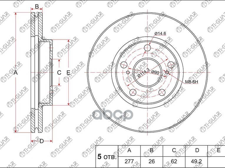 Диск тормозной /передний /TI-GUAR для Toyota AURIS, COROLLA ##E18# 2012-2013 277/26мм TG-43512-02330 RN21001V 4351202330 TOY AURIS/COROLLA 12-/13- пер.вент.(277x26) 5 отв. (мин.2шт.) ##E18# // ПЕРЕДН. ПРАВ. = ЛЕВ. (НАРУЖНИЙ ДИАМЕТР 277ММ / ТОЛЩИНА 26ММ)