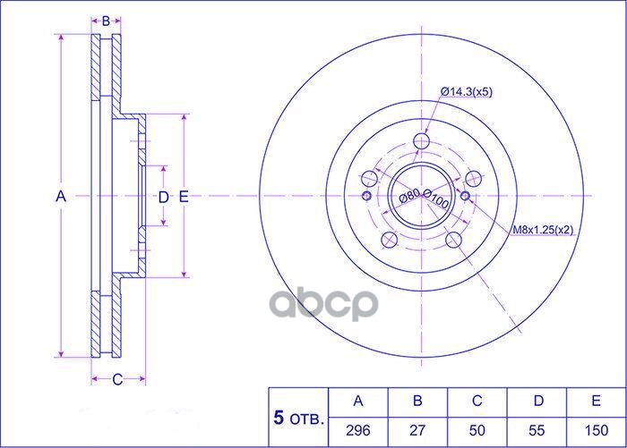 Диск тормозной /передний /TI-GUAR для Toyota Avensis AZT25#, 1AZ/2AZ, 2003- 296/27мм TG-43512-05050 RN1210V 4351205070 4351205050 перед TY Avensis 2.0/2.4, AZT25#, 1AZ/2AZ, 03- (НАРУЖНИЙ ДИАМЕТР 296ММ / ТОЛЩИНА 27ММ)