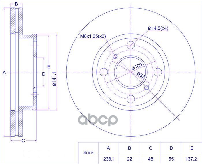 Диск тормозной /передний /TI-GUAR для TOYOTA COROLLA AE100, AE110 1992-2001 255/22мм TG-43512-12550 RN1364V 4351212550 4351247010 Диск тормозной перед TOYOTA COROLLA AE100 / AE110 92-01 D=255мм / толщина 48,2 мм