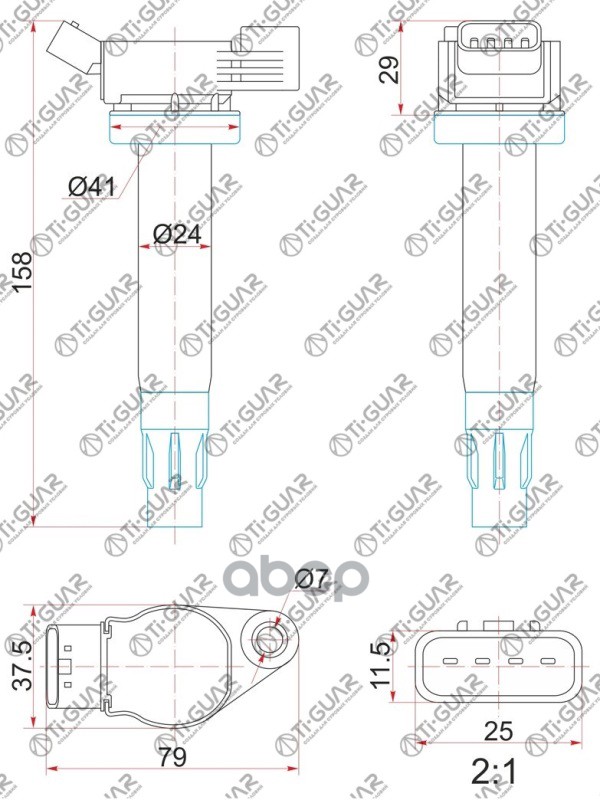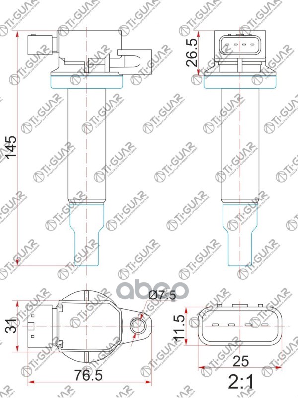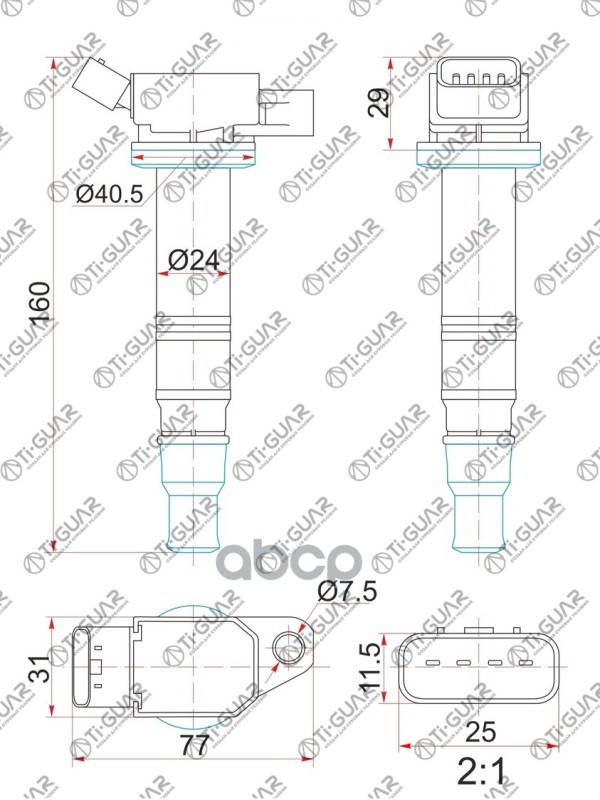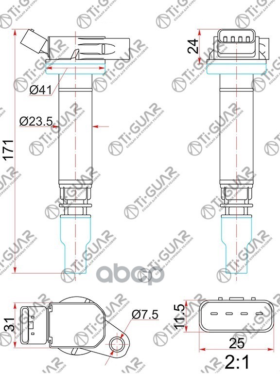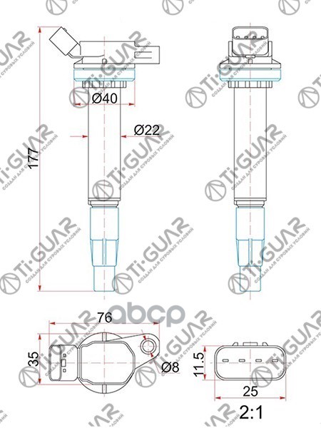 Катушка зажигания /передняя правый /левый /TI-GUAR для Toyota Corolla 2007-1ZRFE Lexus NX200 3ZRFAE TG-90919-02258 (IC2005 ST- IGC113A) 9091902252 90919C2003 TOYOTA COROLLA 07- 1ZRFE /LEXUS NX200 3ZRFAE