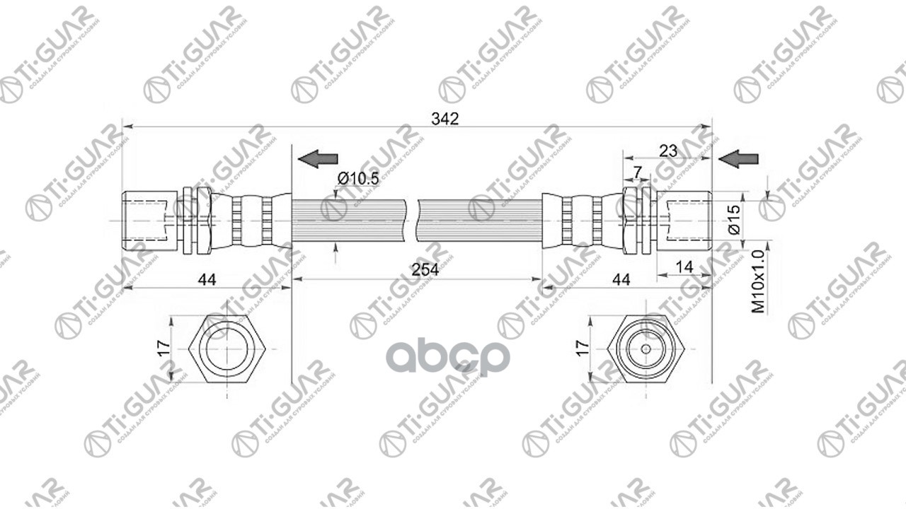 Шланг тормозной /передний правый /левый /TI-GUAR для Toyota Chaser Cresta Mark2 1992-2001 2WD TG-90947-02735 (BHT595 300-44107 30044617) ST9094702735 TOYOTA CHASER / CRESTA / MARK2 2WD 92-01 // ПЕРЕД. ПРАВ.=ЛЕВ.