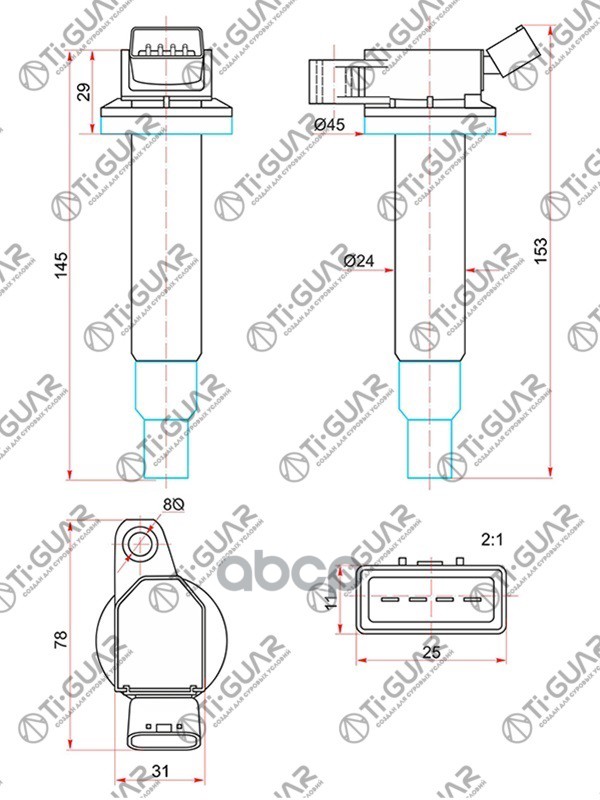 Катушка зажигания /передняя /правый /левый /TI-GUAR для Toyota 3RZ RZN18 RZJ12 RCH LY230 RZU28 400 TG-90919-02237 (IGC105A 90919-02237) SPL1229 TOYOTA 3RZ# RZN18# /21# /RZJ12# /RCH# /LY230 /280 /RZU28# /3## /400