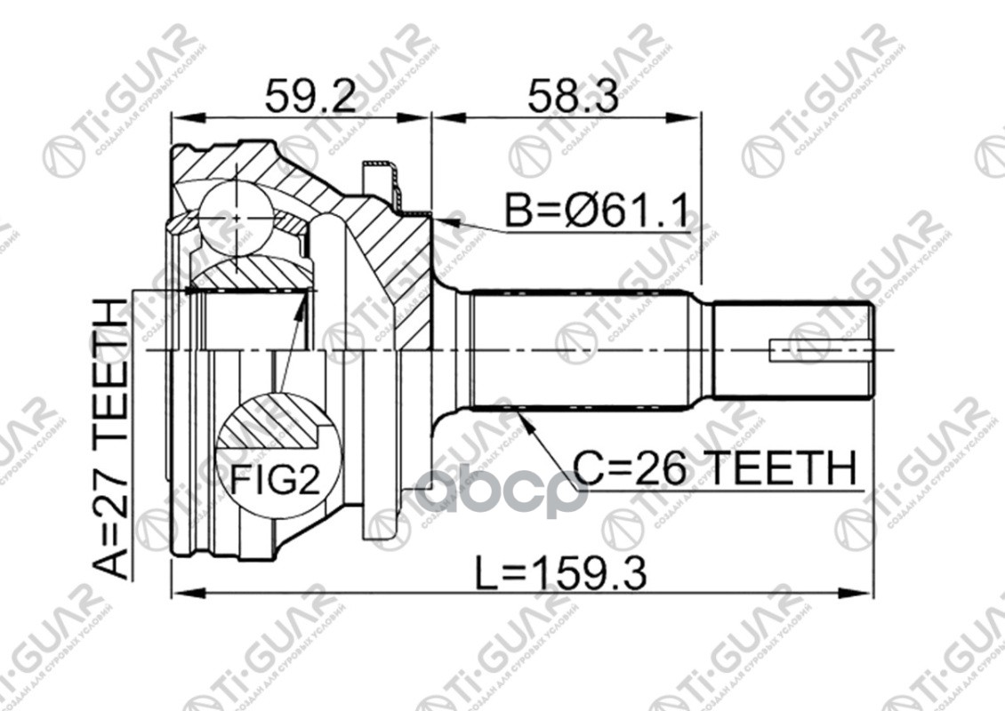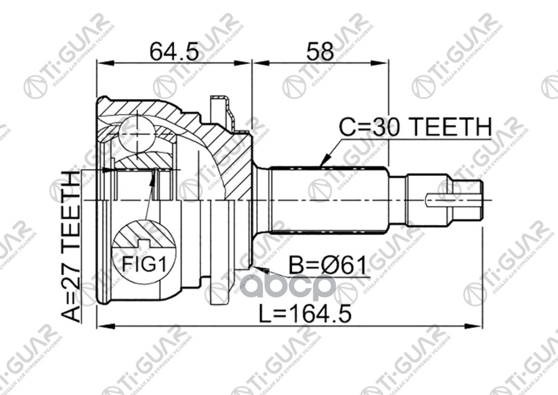 ШРУС наружный /TI-GUAR для Toyota Estima 2006- GSR5# 2GRFE /ABS / 27*61.2*30 TG-9583A48 (TG-9583 TO-083 TO083A48) 0110083 27*61.2*30 / TY ESTIMA 2GRFE GSR5# 06~