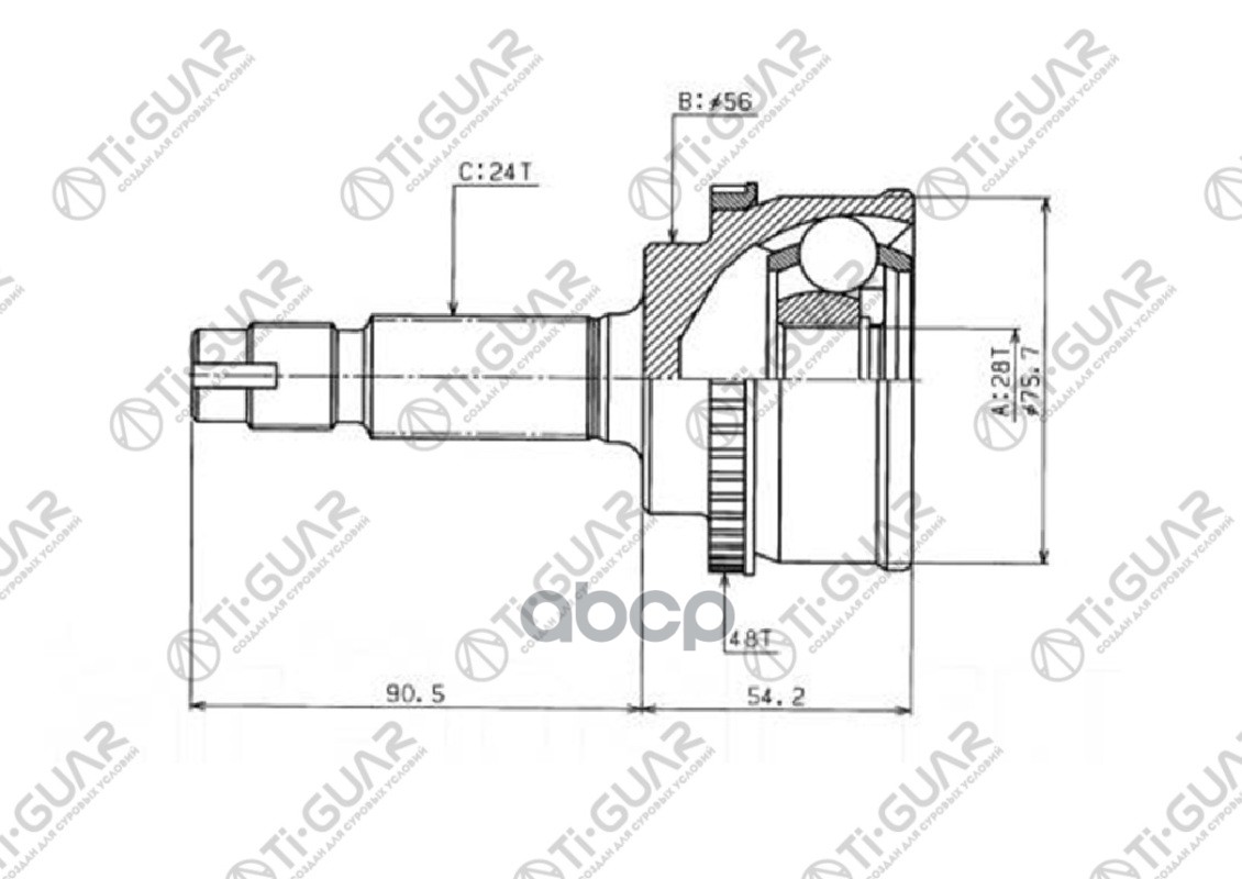 ШРУС наружный /TI-GUAR для TOYOTA VITZ YARIS 1999-2005, ECHO CP10 1999-2003 /С ABS /28*56*24 TG-9590Z48 434100D020 490519 CO7535 GA20501 TO090A48 28*56*24 / TOYOTA VITZ / YARIS / ECHO CP10 1999 - 2003 / OUT / ABS