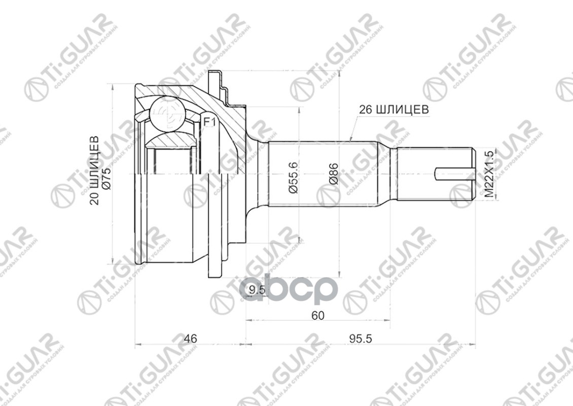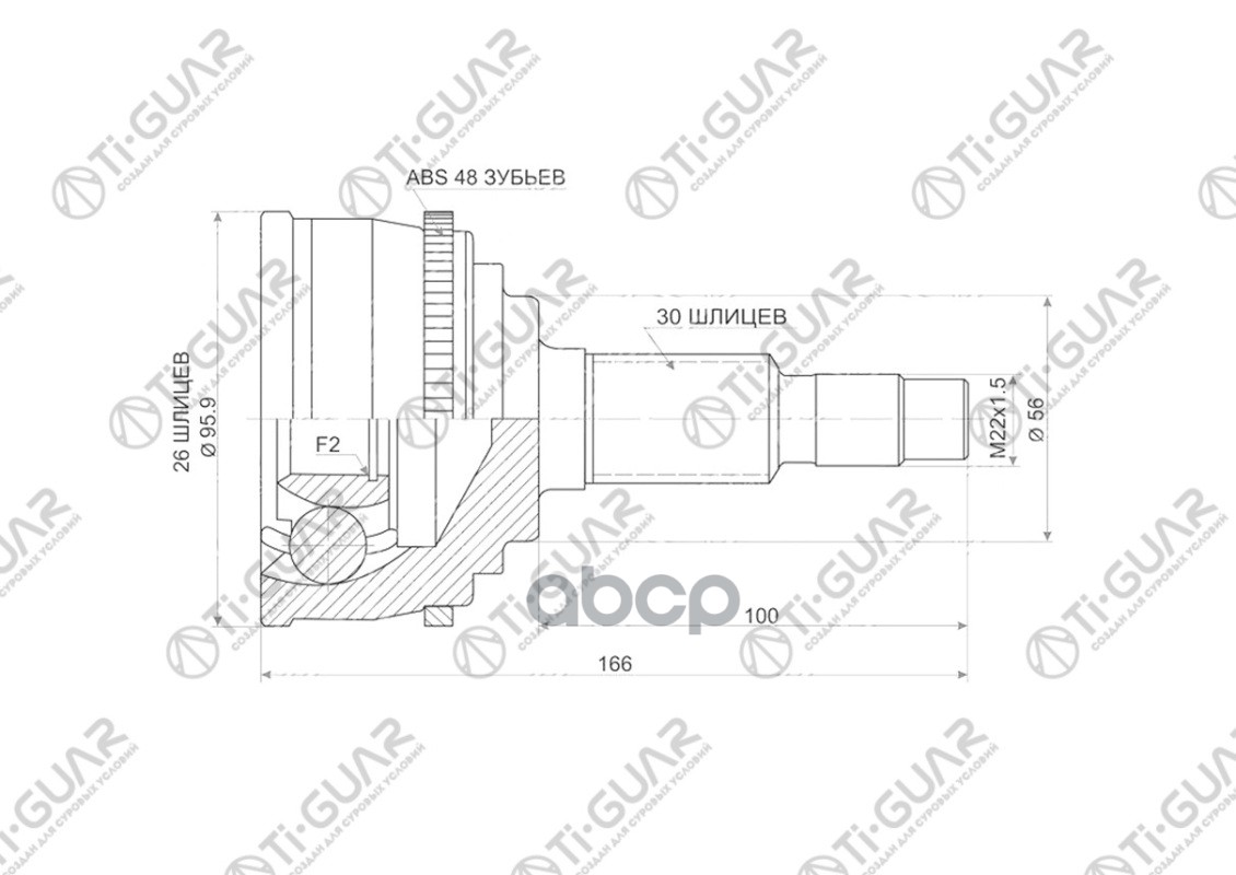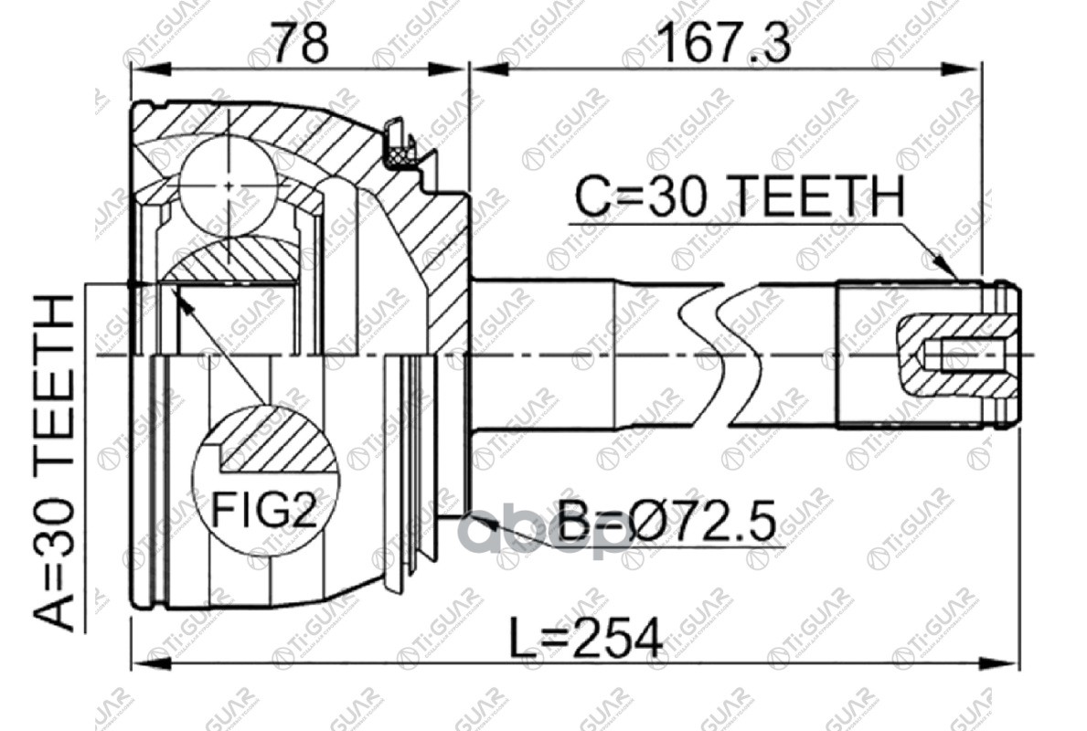 ШРУС наружный /TI-GUAR для Toyota Windom MCV2# 2MZ /ABS /26*56*30 TG-9569Z48 (0110-069A48 TO-069A48 JCT0065A) 0110069A48 4341007030 4341006170 26*56*30 / TY WINDOM MCV20/21 2MZ ABS