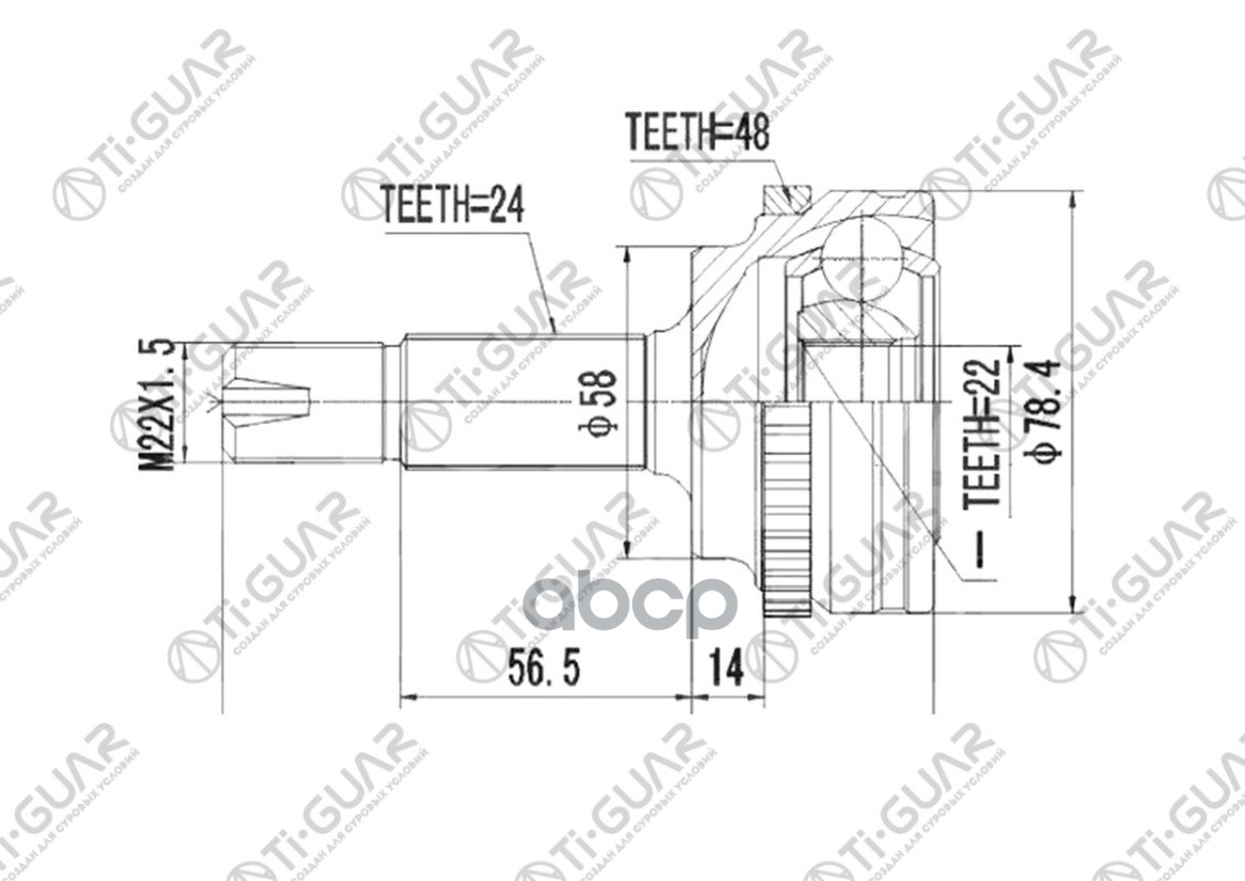 ШРУС наружный /TI-GUAR для Toyota Fun Cargo 1999-2000 NCP20 /ABS /22*58*24 TG-9568Z48 (TO-068 TO-E068 TO068A48) 4341052120 NS12052H 22*58*24 / TY FUN CARGO NCP20