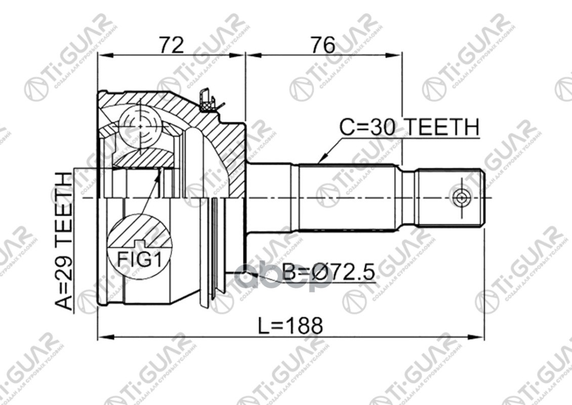 ШРУС наружный /TI-GUAR для Toyota Hilux KUN26 2007-08 VIGO TGN16 2004- /29*72.5*30 TG-9580 (TO-080 TOE080) 434300K020 0110080 29*72.5*30 / TY HILUX (KUN26) 3.0L 1KDFTV 08.2007~ USA EUROPA / HILUX VIGO (TGN16) 04-