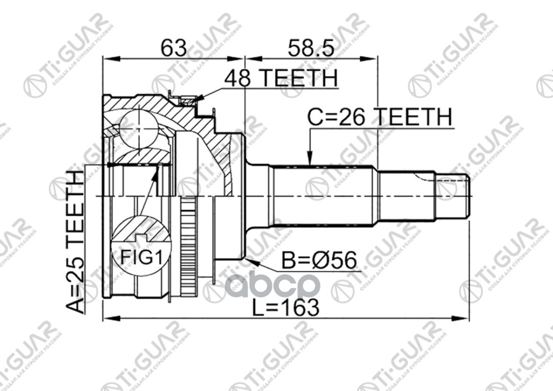 ШРУС наружный /TI-GUAR для TOYOTA AVENSIS AZT250 2.0L, 1AZFSE, AVENSIS AZT251 2.4L 2AZFSE 2003-2008 /С ABS /25*58*26 TG-9587Z48 0110AZT250A48 329084A 4341005420 4342005360 CO3647A TO087A48 TO87A48 25*58*26 / TY AVENSIS (AZT250) 2.0L 1AZFSE / AVENSIS (AZT2