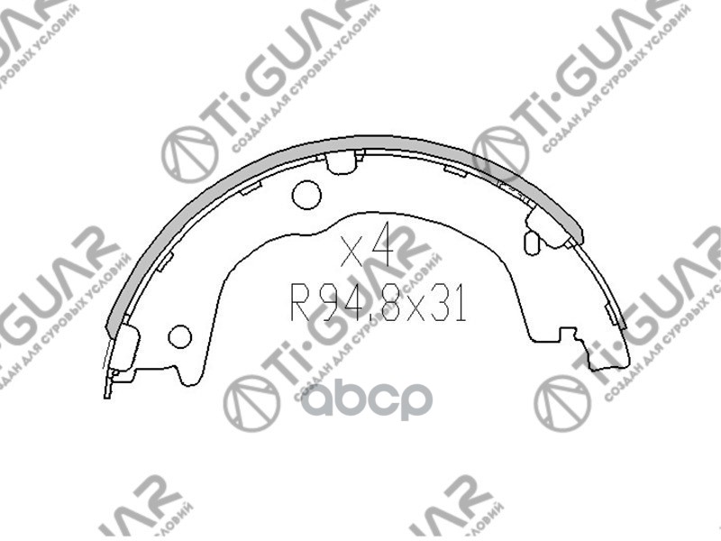 Тормозные колодки /задние комплект 4шт /барабанные /TI-GUAR для KIA SORENTO 2006-, HYUNDAI SANTA FE 2006- TG-B4049 FN11005 583052BA00 4833A21000 KIA SORENTO 06- HYUNDAI SANTA FE 06- ЗАДНИЕ БАРАБАН.