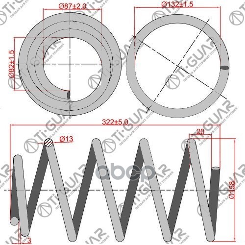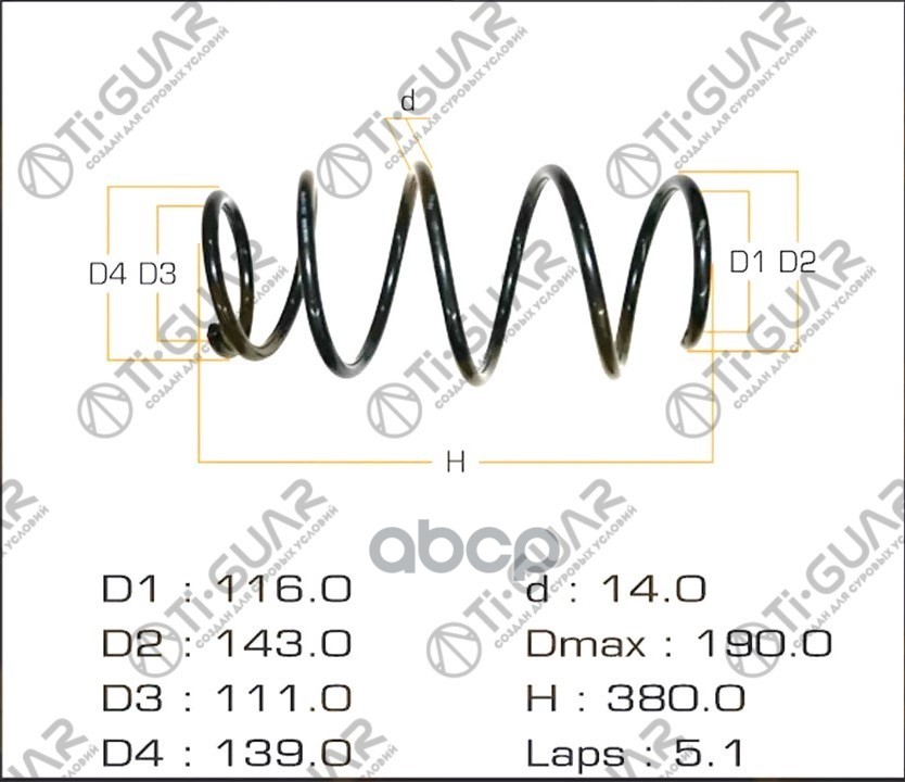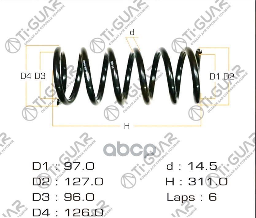 Пружина подвески /передняя правый /левый Ti-GUAR для Mitsubishi L200 стандартные TG-CSS0068 (4059251 18027) MR992346 RH2943 MITSUBISHI L200 // СТАНДАРТНЫЕ ПЕРЕД.