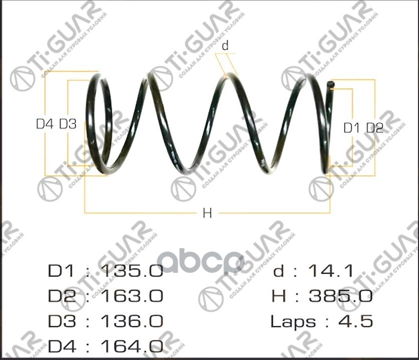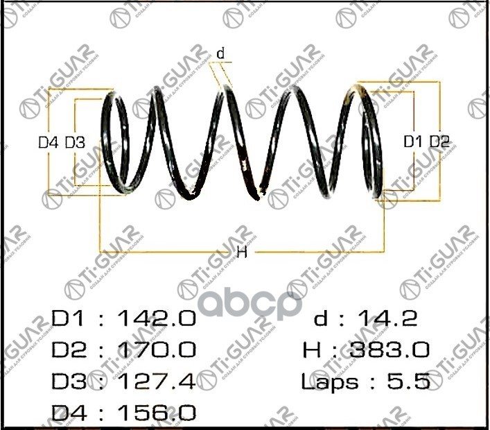 Пружина подвески /передняя правый /левый Ti-GUAR для Toyota Hi Lux 2005-2015 стандартные TG-CSS0070 (C4T-01481 RF3231) 481310K840 TOYOTA HI LUX 05-15 // СТАНДАРТНЫЕ ПЕРЕД.