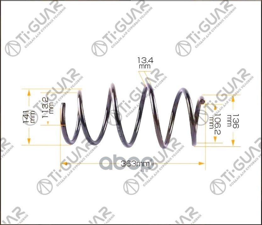Пружина подвески /задняя правый /левый Ti-GUAR для Toyota Corolla Axio 2010- седан TG-CSS0059 (C4T-52752H C4T-52752) 4823152D30 4823152F90 TY COROLLA AXIO(SEDAN) (06/10-) // ЗАД. ПРАВ. = ЛЕВ.