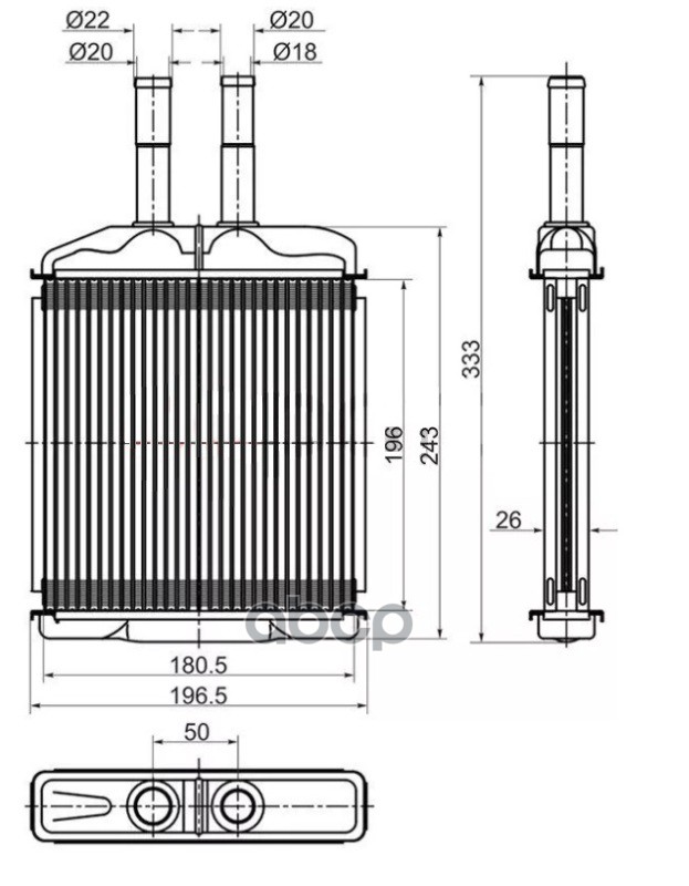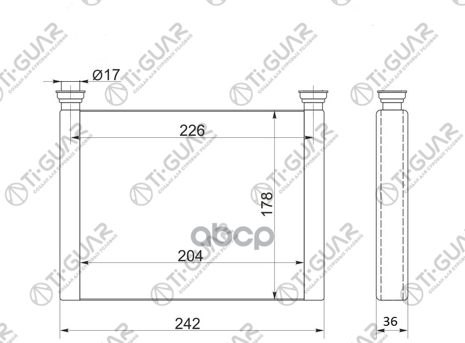 Радиатор отопителя /TI-GUAR для Volkswagen Multivan 2003- Transporter T5 2003 TG-RIH0019 STVWT53950 NDE2065 73976 VOLKSWAGEN MULTIVAN 03-/VOLKSWAGEN TRANSPORTER T5 03-