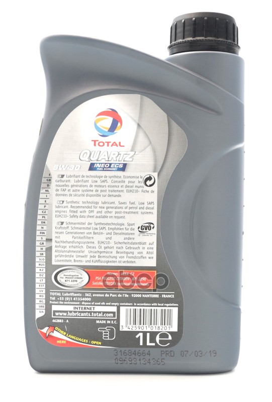 Купить запчасть 166252 Масло моторное синтетическое Total Quartz INEO ECS 5W-30 1л (213768) 166252 с доставкой в Эль-Монте.