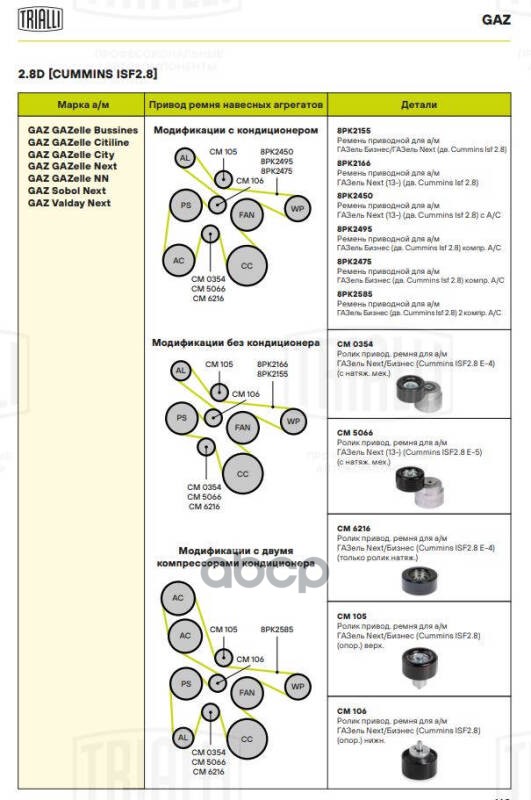 Наименование: Ролик привод. ремня с натяж. мех. для ам ГАЗель Next (13-) (дв. Cummins 2.8D Euro-4) (CM 0354)