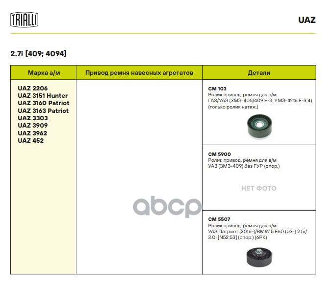 Бренд: Trialli, артикул: CM 103, Ролик натяжной двс 405 евро 3 Trialli 40524-1308080 40624-1029010;3203RS;40624-1308080;40624.1029010-01;40524-1308080;4052-1308080;4062-41-0290100-00;40624102901000;4216-1029010;406241029010;3203RS;406241308080;40624102901001;405241308080;40521308080;4062. |
