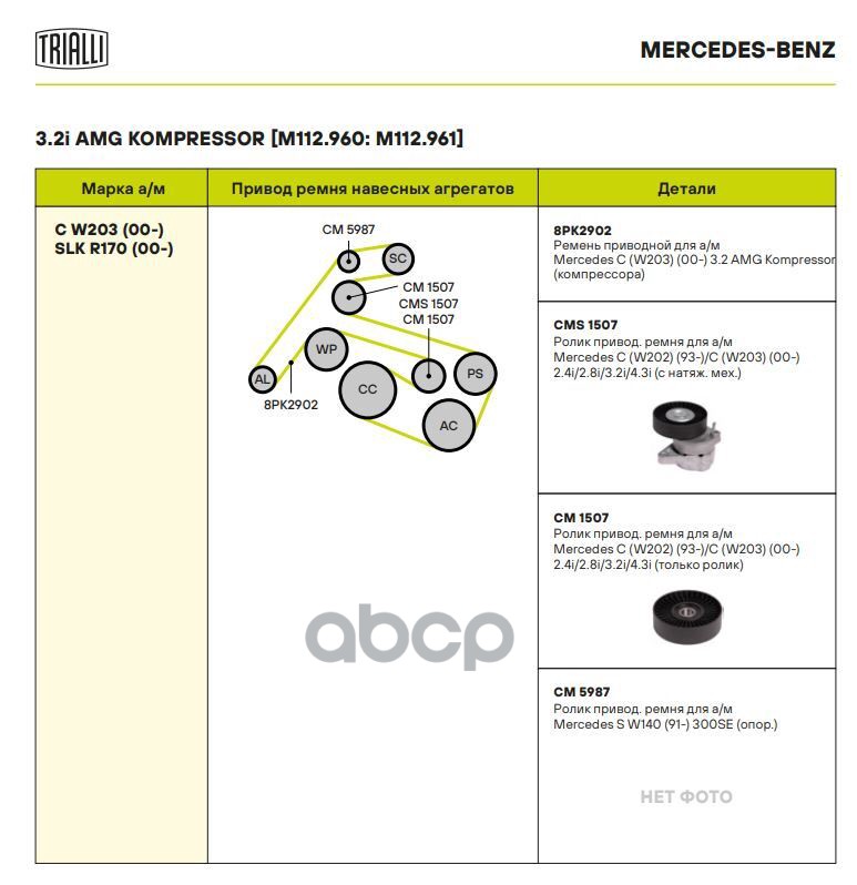 Наименование: Ролик привод. ремня Mercedes C (W202) (93-)/C (W203) (00-) 2.6/3.2/5.4 (CM1507)