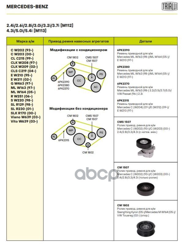 Купить запчасть CM1507 Ролик привод. ремня Mercedes C (W202) (93-)/C (W203) (00-) 2.6/3.2/5.4 (CM1507) с доставкой в Эль-Монте.