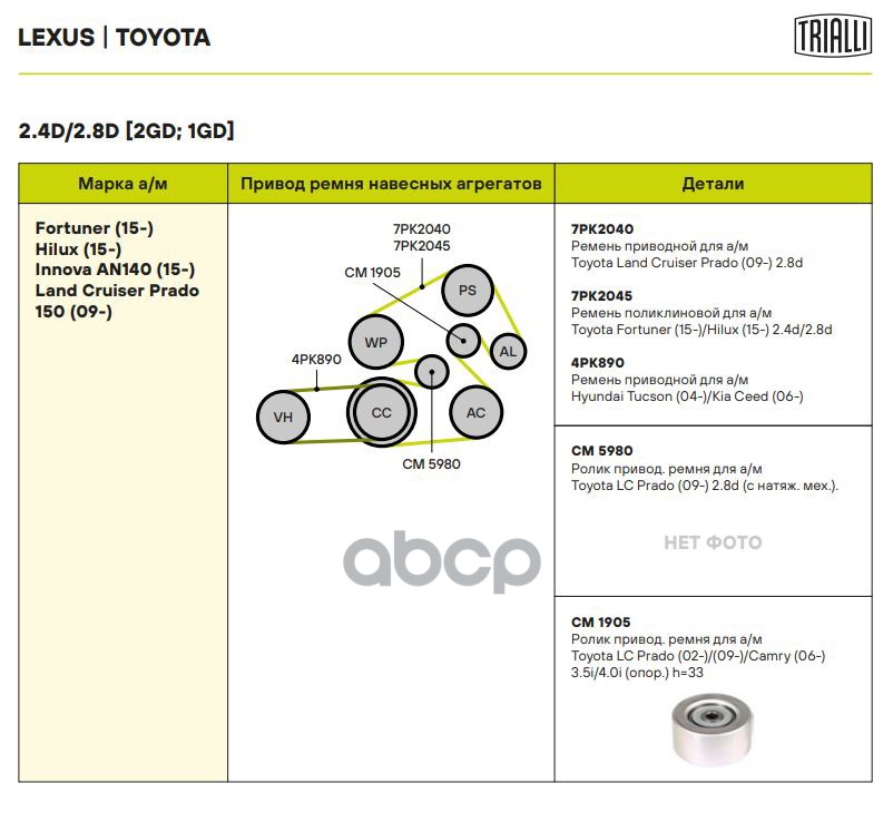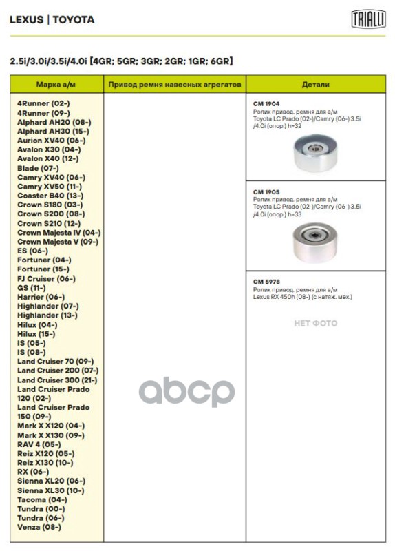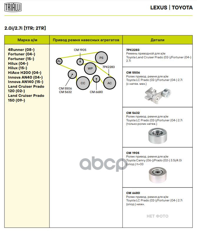 Наименование: Ролик привод. ремня Toyota Land Cruiser Prado 2.7/4.0i (02-)/Land Cruiser Prado (15-) 2.8d (CM 1905)