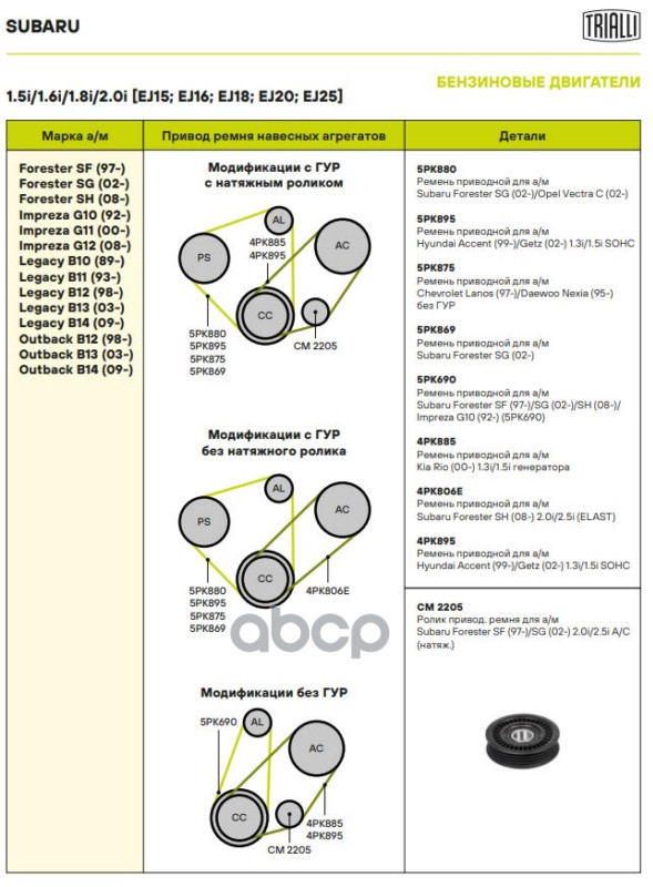 Наименование: Ролик привод. ремня Subaru Forester SF (97-)/SG (02-) 2.0i/2.5i A/C (натяж.) (CM 2205)