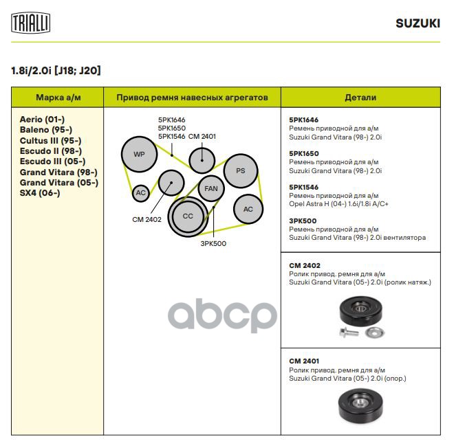 Купить запчасть CM2402 Ролик генер. с натяж. мех. Suzuki Grand Vitara (05-) 2.0 CM2402 с доставкой по России.
