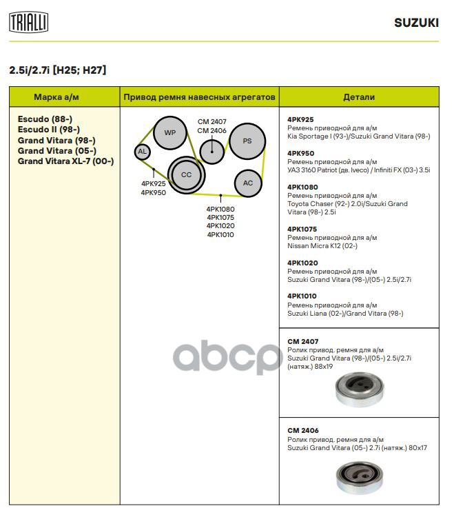 Купить запчасть CM2406 Ролик приводного ремня Suzuki Grand Vitara 05- 2.7i только ролик Trialli с доставкой по России.