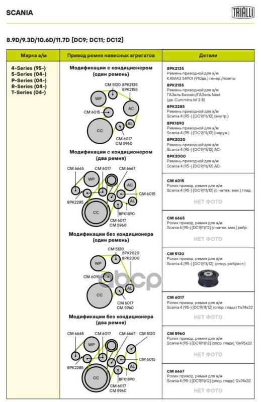 Наименование: Ролик привод. ремня Scania 4 (95-) [DC9/11/12] (опор. ребрист.) d80 (CM 5120)