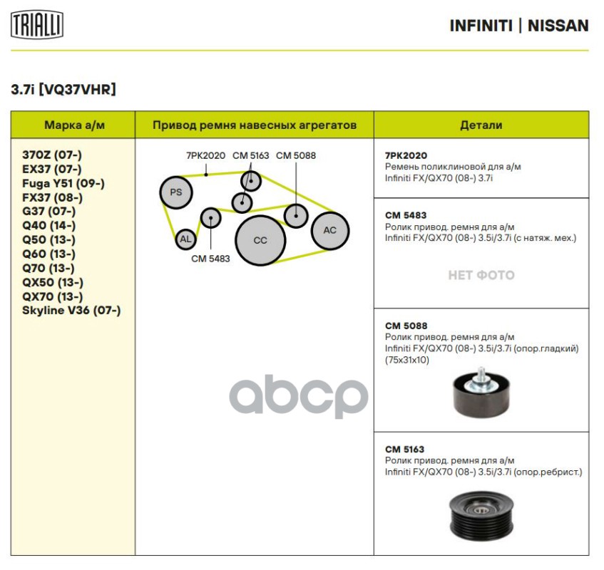Купить запчасть CM5163 Ролик ремня приводного INFINITI G37/FX35-50/NISSAN 350Z/370Z 08- с доставкой в Эль-Монте.