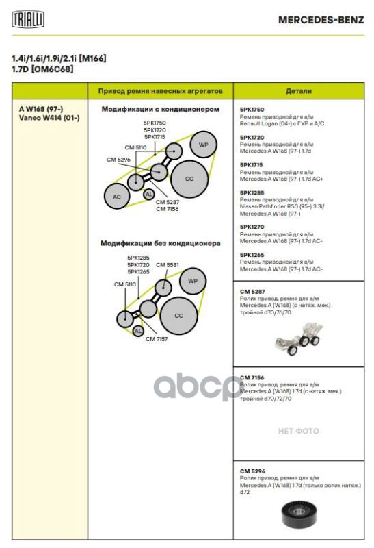 Купить запчасть CM5296 Ролик приводного ремня Mercedes A (W168) 1.7d (только ролик натяж.) d72 с доставкой в Эль-Монте.