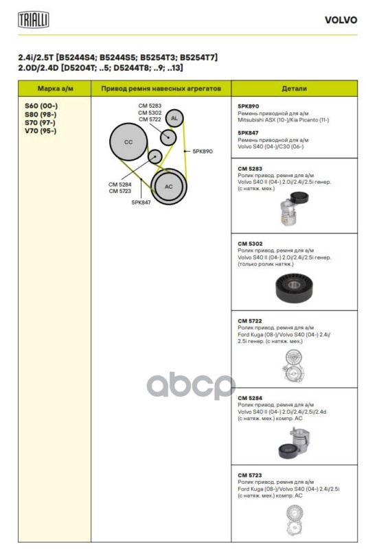 Наименование: Ролик привод. ремня для а м Volvo S40 II (04-) 2.0i 2.4i 2.5i генератора (CM 5302)