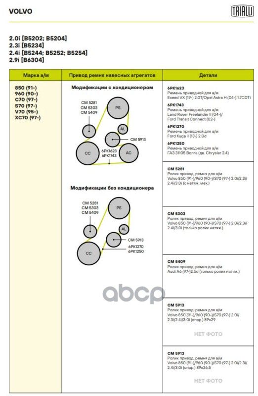 Купить запчасть CM5303 Ролик привод. ремня для а/м Volvo S70 (97-) 2.0i/2.3i/2.4 генератора (только ролик натяж.) (CM 5303) с доставкой по России.