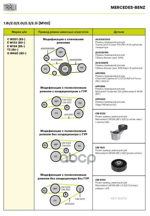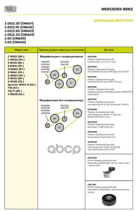 Наименование: Ролик привод. ремня для а/м Mercedes E (W124) (85-) 2.0i/2.3i (с натяж. мех.) (CM 5322)