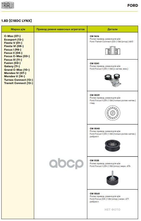 Наименование: Ролик привод. ремня с натяж. мех. Ford Focus (04-) 1.8d (CM 5341)