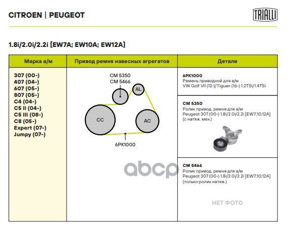 Ролик привод. ремня Peugeot 307 (00-) 1.8i/2.0i/2.2i [EW7;10;12A] (с натяж. мех.) (CM 5350) CM 5350 5751G6;1611425380;5751C0;5751G8;T39041;WG1253519;V220409;8641283008;GA35920;534036210;R54155;APV2712;RT1898;