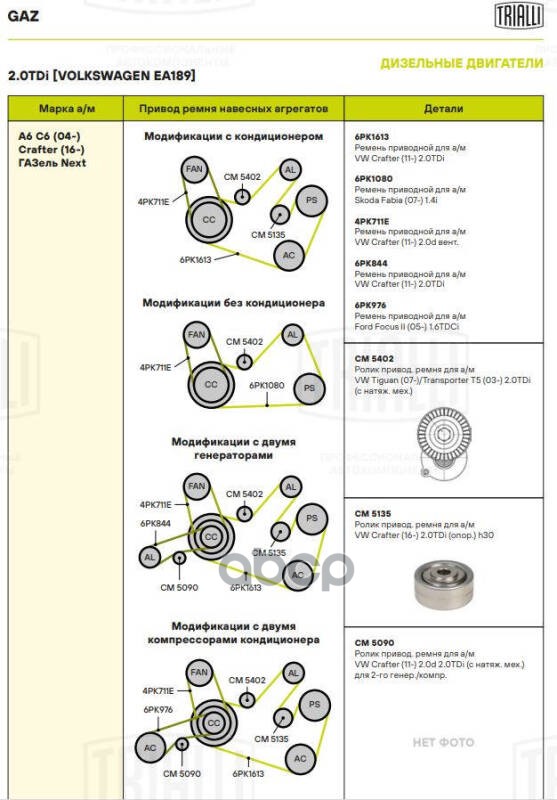Наименование: Ролик привод. ремня для а.м VW Transporter T5 03- 2.0TDi с натяж. мех. CM 5402