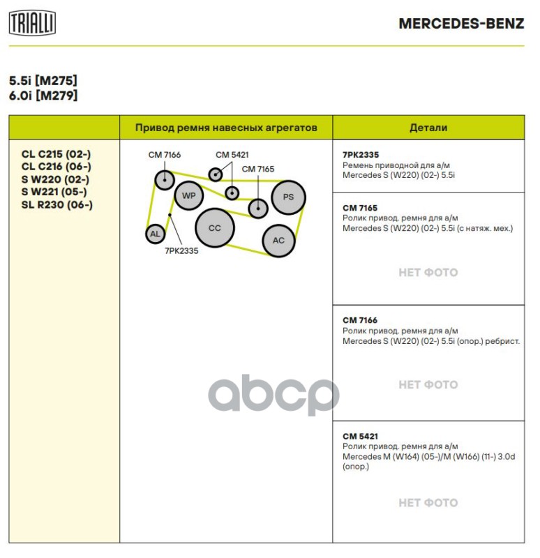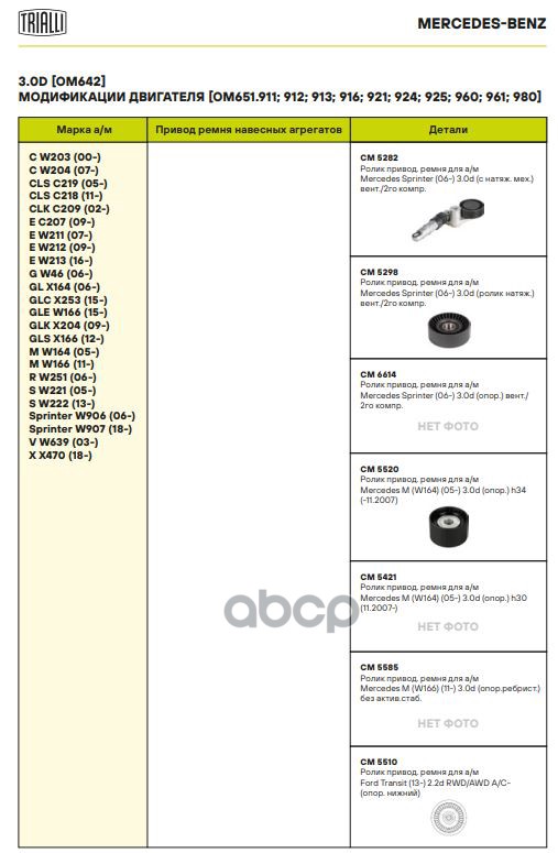 Купить запчасть CM5421 Ролик приводного ремня Mercedes M (W164) (05-) 3.0d (опор.) h30 (11.2007-) Trialli с доставкой по России.