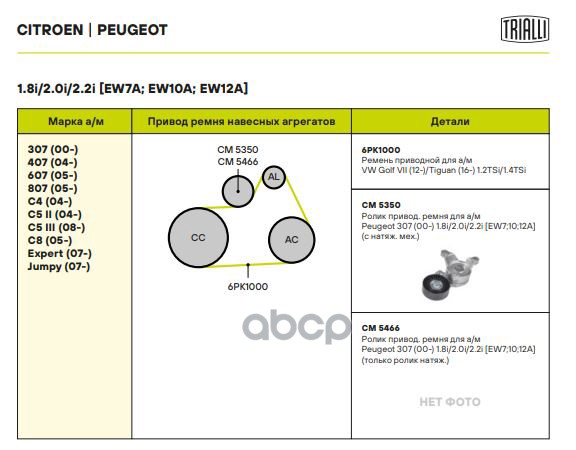 Купить запчасть CM5466 Ролик приводного ремня Peugeot 307 (00-) 1.8i/2.0i/2.2i [EW] (только ролик) Trialli CM 5466 5751G8;5751C0;9663566180; с доставкой в Эль-Монте.