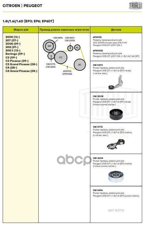 Купить запчасть CM5473 Ролик привод. ремня для а/м Peugeot 308 (07-) 1.4i/1.6i [EP] генер. (с натяж. мех.) (CM 5473) с доставкой в Эль-Монте.