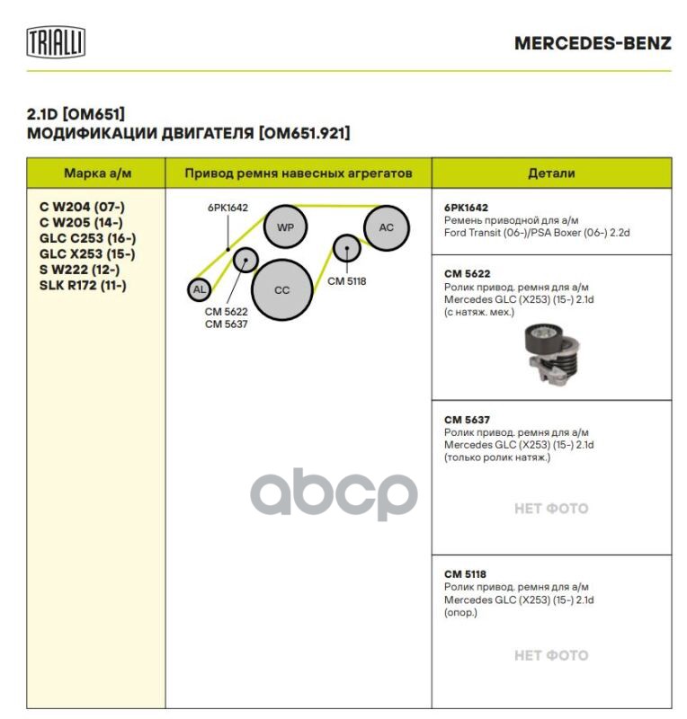 Наименование: Ролик привод. ремня для а/м Mercedes GLC (X253) (15-) 2.1d [OM651] (только ролик натяж.) (CM 5637)